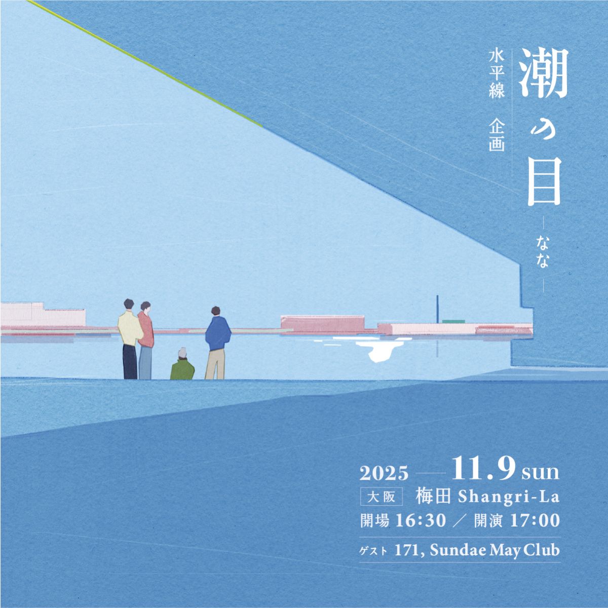 『潮の目 -なな-』2025.11.09(日)<場所>大阪・梅田シャングリラ<時間>開場 16:30 / 開演 17:00<共演>171 / Sundae May Club▼チケット情報一般 ¥3,500(税込)/ 学割 ¥2,500(税込)※ご入場時別途ドリンク代要※学割は入場時に学生証の提示が必要となります。※電子チケットのみ取り扱いになります。